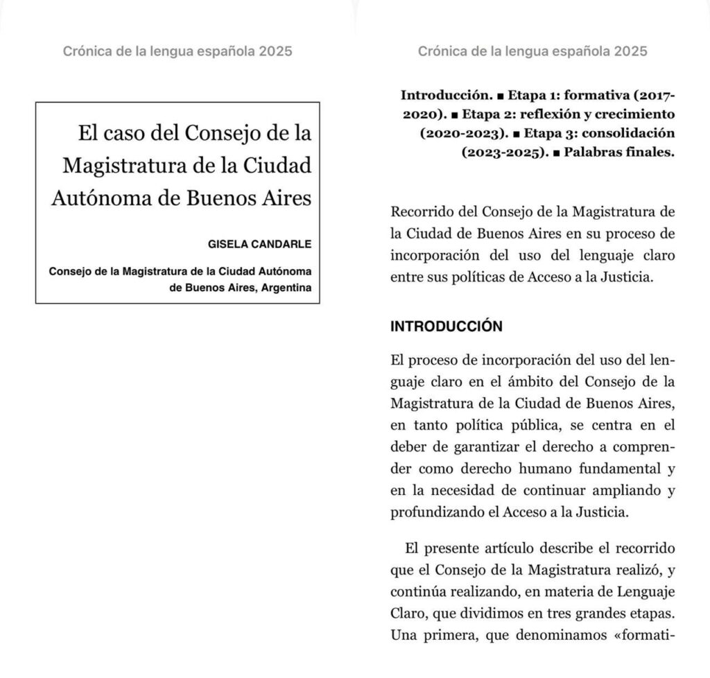 En esta ocasión la edición está dedicada entre otros temas al Lenguaje Claro y Accesible y cuenta con artículos de diversos miembros de la Red Panhispánica de Lenguaje Claro, entre los que se encuentra el Consejo de la Magistratura de la Ciudad en. El artículo de nuestra institución se titula “El caso del Consejo de la Magistratura de la Ciudad Autónoma de Buenos Aires” y fue escrito por Gisela Candarle, titular de la Secretaría de Coordinación de Políticas Judiciales, autoridad de aplicación de la Ley de Lenguaje Claro de la Ciudad.