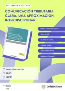 El lunes 27 de octubre a las 17h se presenta el libro COMUNICACIÓN TRIBUTARIA CLARA, UNA COMUNICACIÓN INTERDISCIPLINAR.